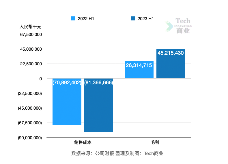 上半年毛利为452亿元,同比增长72%。