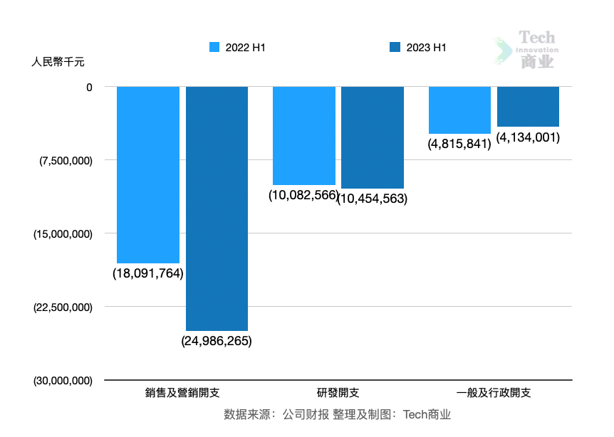 研发开支为105亿元,同比增幅为4%。一般与行政开支为41亿元,同比减少14%。