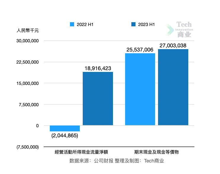 根据财报,美团公司上半年经营活动现金净流入额为189亿元,上一财年同期为净流出20亿元,本期经营活动现金由流出转向流入,显著改善。该公司期末现金及现金等价物额为270亿元,同比上一财年同期增长6%。