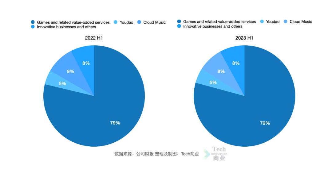 从收入比例来看,上半年各分部收入占比基本持平,游戏及相关增值服务收入占比为79%,有道、云音乐、创新及其他业务收入占比分别为5%、8%、8%。