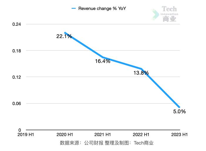 该公司上半年收入同比增长5%,其增速放缓至近年最低。2020~2022财年上半年该公司收入增幅分别为22%、16%、14%。