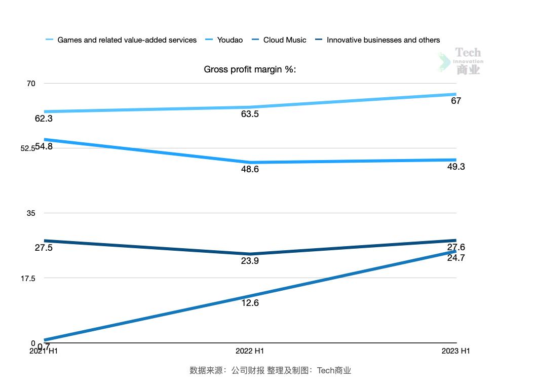 根据财报,该公司上半年毛利率为59.7%,优于上一财年同期的55.2%。其中网易旗下各项业务毛利率分别有所提升: