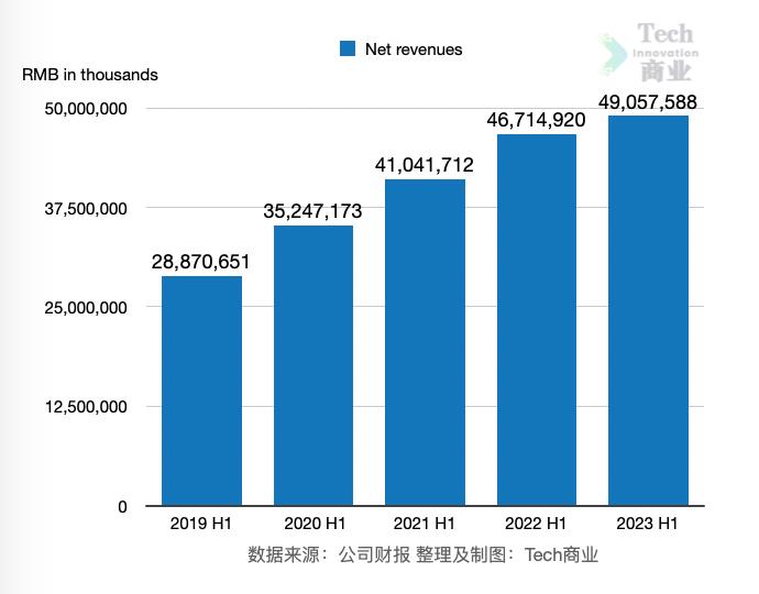 根据财报,网易公司2023年上半年收入为491亿元,本期为近五个财年上半年收入最高,2019~2022财年上半年该公司收入分别为289亿、352亿、410亿、467亿元。