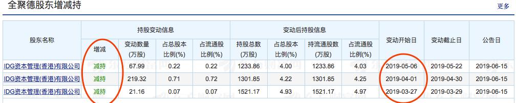 (IDG资本2019年减持表)
