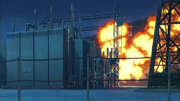 片中有一幕值得玩味:三叶与伙伴们站在璀璨的星空下,炫目的彗星冲破云层,骤然裂变的火光飞速坠入荒野中,直至三叶的眼睛被灼热的火光充满——彗星坠落的景象似乎正是1945年美国在广岛、长崎投射的两颗原子弹的历史再现,而“3.11”中福岛核电站的核事故又再次加深了现实性想象。