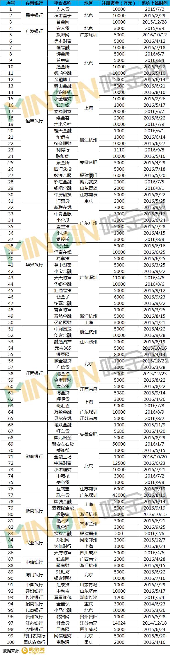 (注:以上数据来自鸣金网,时间截至2016年10月底)