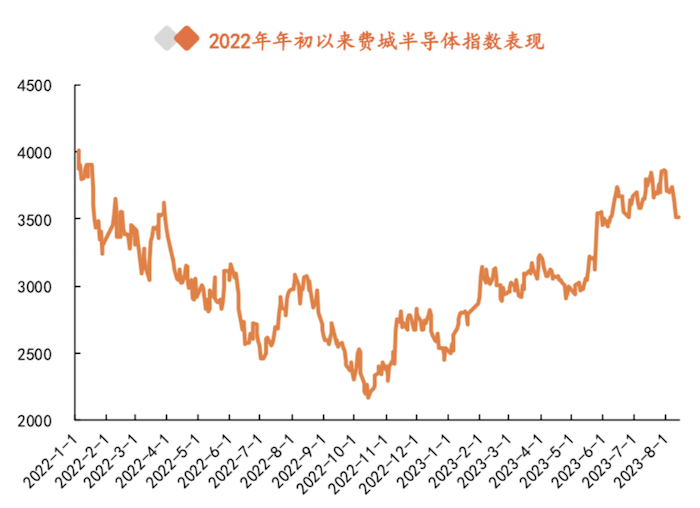 西南证券研报指出,从全球半导体出货量看,一个完整的半导体周期的持续长度为平均40个月左右。从盈利水平上看,费城半导体指数从2022年二季度起步下行周期,从2023年一季度的整体业绩和增速看,费城半导体指数整体收入同比下降8.8%,整体净利润同比大幅下滑46.4%,已步入底部区间。