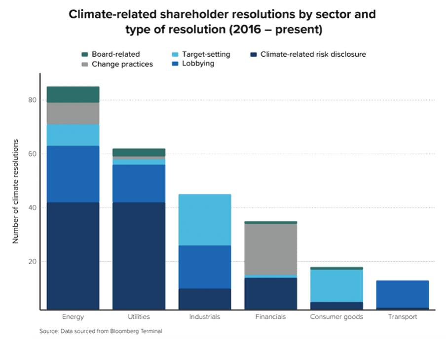 图片来源:彭博金融终端 - 各行业与气候相关的股东决议数量与种类