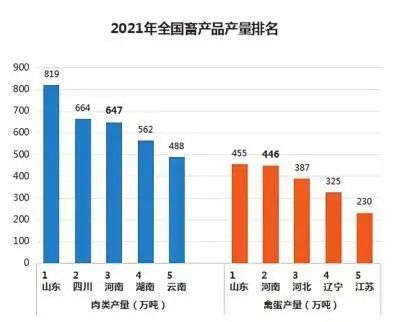 根据2022年的统计数据,河南省猪牛羊禽肉类的年产量,紧随山东和四川,排名全国第三,占全国产量的7.1%。