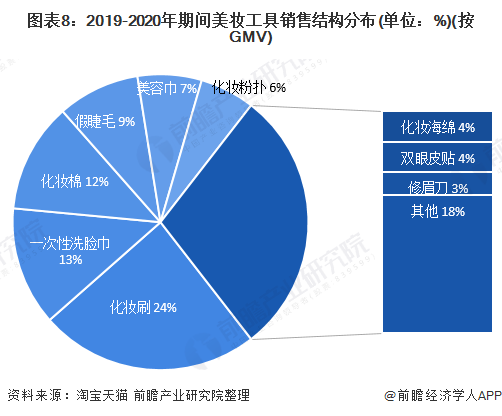 化妆刷是美妆工具中占比最高的细分品类 来源:前瞻产业研究院