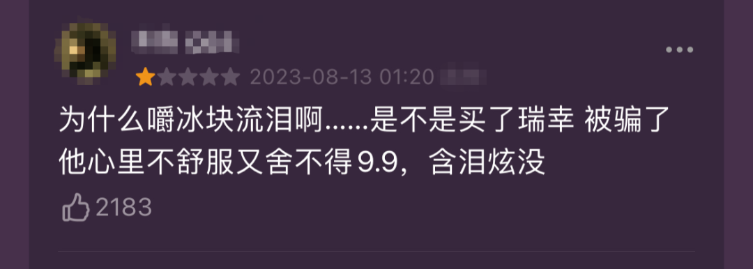 电影中,有效的过往信息零碎,让观众无法明晰人物动机,这也让几处情绪化的情节设置加重观众的困惑。三人夜游动物园、用嘴接力衔冰块等情节,导演解释为表现三人情感的共通性和流动性,但如此抽象的回应并没有为观众解惑,小红书上,网友对“接力吻”的形容都是“炸裂”“不适”。更有网友调侃,原本是周冬雨和刘昊然的“燃冬”,屈楚萧只扮演了“燃”的火字旁。