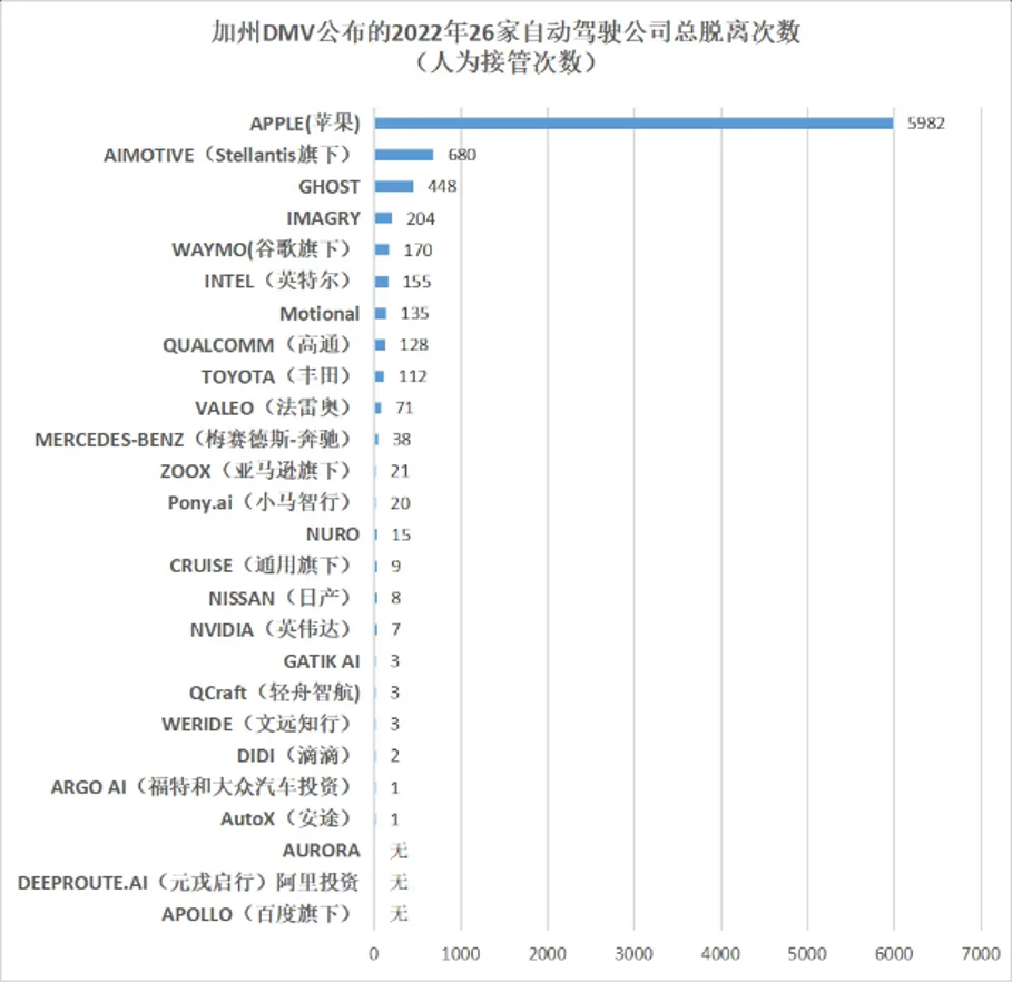 2022年,美国加州车辆管理局DMV的自动驾驶路测包含了四个维度,百度在“人工接管次数来看”这一项中名列第一。在Navigant Research的榜单中,百度与Waymo、Mobileyes位列前三。
