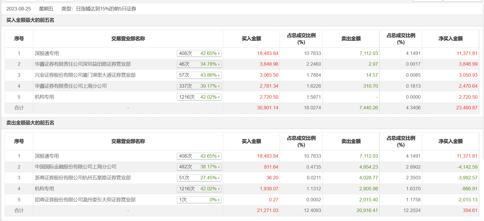 具体来看,机构买入4659.57万元,卖出2805.98万元,合计净买入1853.58万元。此外,深股通专用、华鑫证券深圳益田路证券营业部分别买入1.85亿元、3849.96万元;深股通专用、中国国际金融上海分公司分别卖出7112.03万元、4954.23万元。