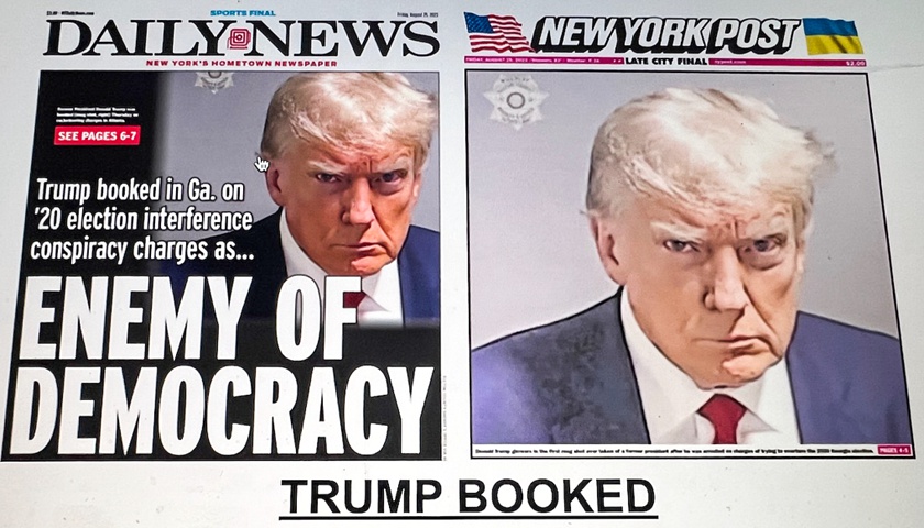 8月24日,特朗普就今年以来的第四起刑事诉讼前往佐治亚州富尔顿县监狱投案,拍下第一张投案大头照。