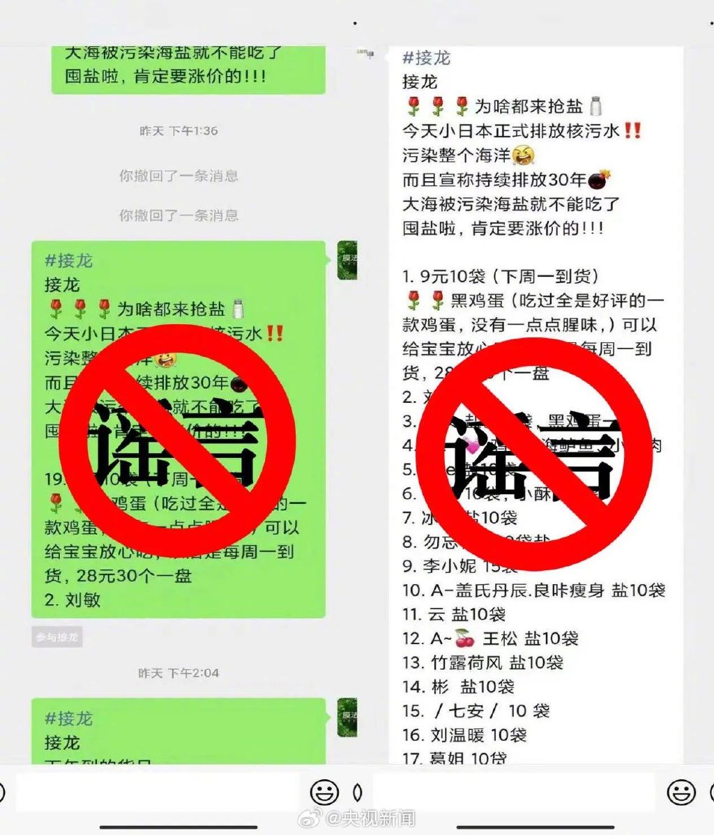 据央视新闻,陕西西安未央警方通报,生鲜店铺老板刘某为提高销售额,利用日本核污染水排海事件,在多个社交群内发布“盐将涨价”的不实信息,诱导上百人接龙购盐,严重扰乱市民正常生活秩序。目前,警方已依法对刘某予以行政处罚。