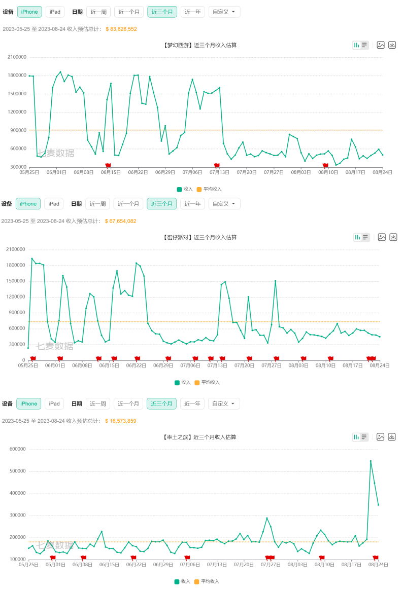 但这6款游戏中,《逆水寒》和《巅峰极速》上线于今年6月,《全明星街球派对》今年5月才开始内测,8月才正式上线。这三款游戏能够贡献的营收还没有表现在财报上,所以真正支撑网易游戏收入大头的,应该是还是《梦幻西游》、《蛋仔派对》和《率土之滨》。而这三款游戏中,占收入大头的《蛋仔派对》和《梦幻西游》在6月份之后都有一个明显的收入下滑趋势。