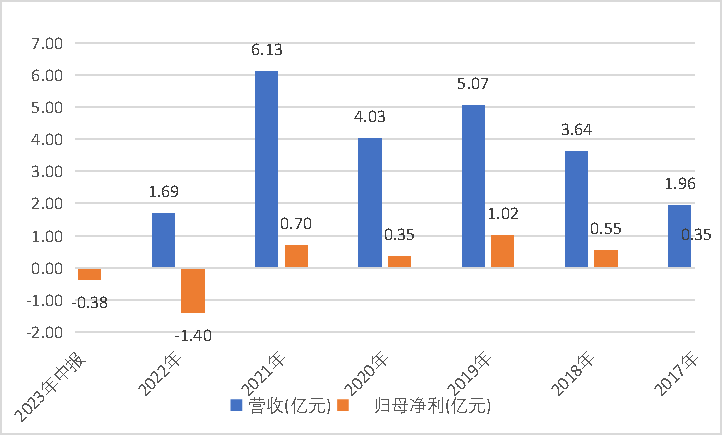 2022年公司营收仅剩1.69亿元,归母净利亏损1.4亿元。