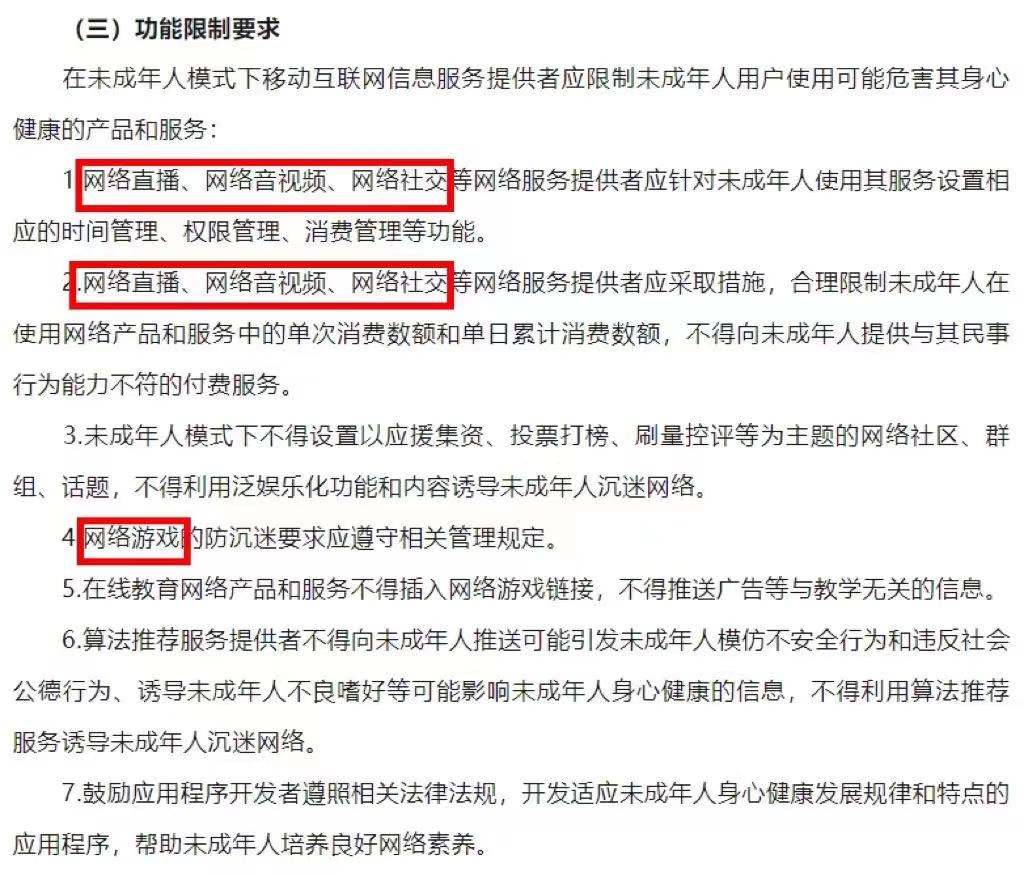 1,这份跟未成年人保护紧密相关的建设指南,对网络直播、音视频、社交等均作出了更详细的规定,但对网络游戏却并未新增其他要求。