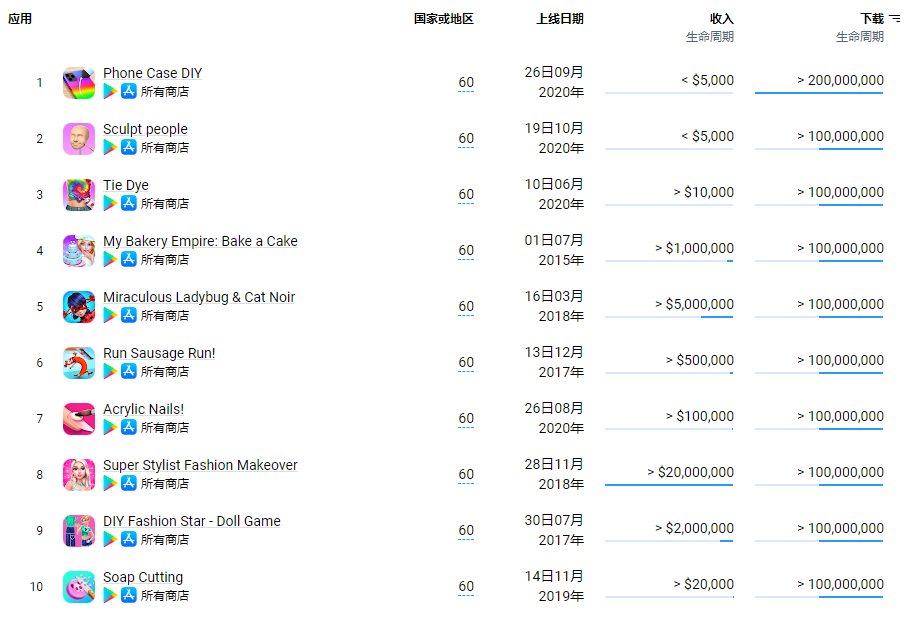 这些数据带来的最显著变化,就是我们越来越难见到新的爆款出现。在AppMagic发布的2023年第一季度下载量最高的10款休闲游戏中,2023年上线的新游数量为0。