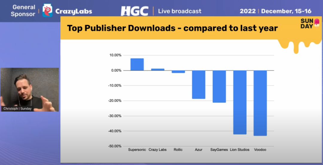 头部发行商的下载量变化情况,2022年底统计