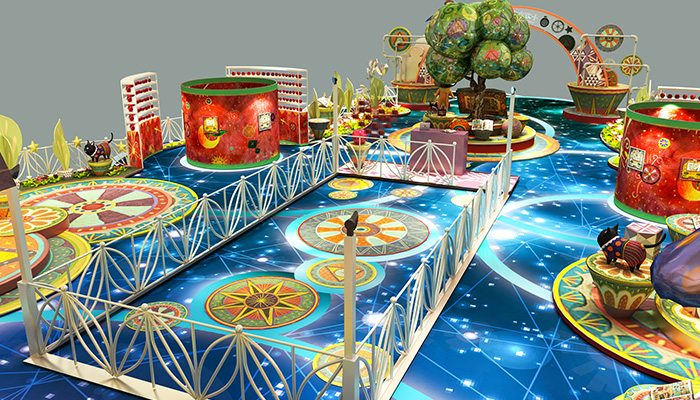 正是这样曼妙的色彩和高维空间的叙事方式,让致力于“创造最具价值跨界艺术空间”的上海晶雅艺术的十几位设计师有了充分的发挥空间,这是一群有过十几年为国外著名IP服务的艺术空间团队。而这次双方决定联手创造一个属于中国人自己的IP. 经过整整长达一年时间的讨论和设计,他们把虚拟场景完美复刻成为现实的物理实景并顺利商业落地。 “虽然相比起国外成熟IP,推广工作会更难一些,但是很有意义,从文化行业的发展来看也到了这样一个特定的时间节点了” 晶雅艺术的CEO秦芳对中国本土IP在线下的发展充满了信心。