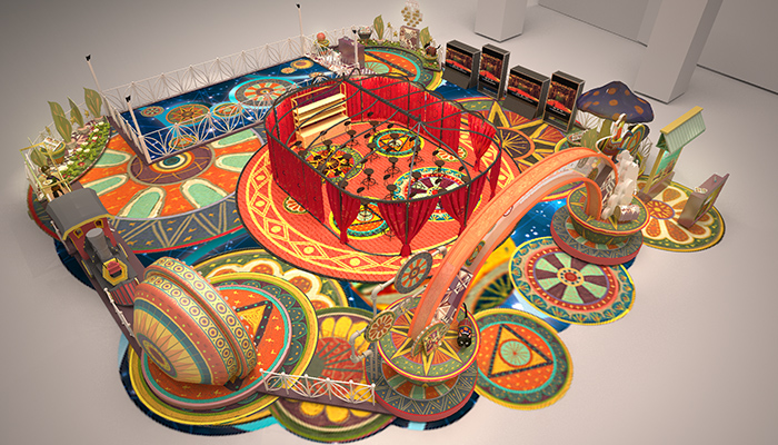 随着这样的想法,基于电影发展而来的《爱有引力》主题展及周边合作也应运而生。当上海全球首展结束后很多人惊叹,这既不是只能拍照留影的网红展,更与传统商业美陈大相径庭。它更像是一个观众能在其中“玩耍”的沉浸式童话世界。