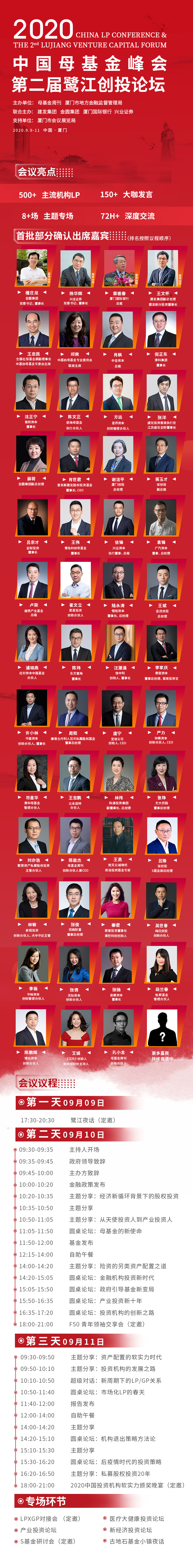 2020年9月9日-11日,《母基金周刊》、厦门市地方金融监督管理局将携手行业内知名母基金与机构LP、产业集团、经济学家将齐聚厦门,举办「2020中国母基金峰会暨第二届鹭江创投论坛」,并作为“2020厦门国际投资贸易洽谈会”平行论坛之一,开启中国投资机构新征程。