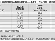 机构:2025年中国智能手机市场出货量约2.85亿台,华为居首