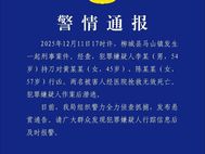 12月14日,广西柳州柳城县公安局发布警情通报:2025年12月11日17时许,柳城县马山镇发生起刑事案件。经查,犯罪嫌疑人李某(男,54岁)持刀对黄某某(女,45岁)、陈某某(女,57岁)行凶。两名被害人经医院抢救无效死亡,犯罪嫌疑人作案后潜逃。目前,我局组织警力全力侦查抓捕,发布悬赏通告。请广大群众发现犯罪嫌疑人行踪信息后及时报警。据新京报,12月11日,柳州柳城县马山镇发生一起命案,嫌疑人在逃。13日,记者了解到,当地警方发布悬赏通告,对提供线索帮助抓获人员的给予10万元。悬赏通告显示,嫌疑人李某,男性,逃跑时身穿黑色上衣,驾驶两轮电动车。 - 12:19