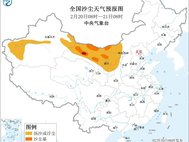 中央气象台2月20日06时继续发布沙尘暴蓝色预警:受冷空气大风影响,预计2月20日08时至21日08时,新疆东部和南疆盆地、内蒙古西部、甘肃西部、宁夏中北部、陕西北部等地有扬沙或浮尘天气,其中,内蒙古西部、甘肃西部、宁夏北部等地的部分地区有沙尘暴,局部有强沙尘暴。 - 07:23