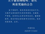 中国科协11月28日公告:鉴于杨晓明、徐佐存在违纪违法行为,为维护全国创新争先奖的荣誉性、权威性、严肃性,经奖项主办单位研究决定,撤销杨晓明、徐佐所获全国创新争先奖奖状,收回所获奖章、证书。 - 19:04