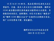 湖南郴州通报“市民来电无法接听”:技术人员正全力排查检修,12345恢复时间待定