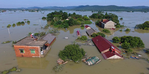 2016年7月7日消息,自6月30日晚,安徽省宣城市普降大到暴雨,江河水位暴涨。造成该市双桥联圩、四合圩、姜家圩和幸福圩等13个千亩以上的圩口先后溃堤漫破,洪水淹没附近的村镇、民房、农田,到处一片汪洋。据宣城市防汛抗旱指挥部7日8时发布消息称,此次洪灾致使全市7个县市区83个乡镇,101.27万名群众受灾。农作物受灾面积190.88万亩,直接经济损失43.46亿元。图为2016年07月07日,航拍遭受洪水袭击的安徽省宣城市狸桥镇东云村一片汪洋。