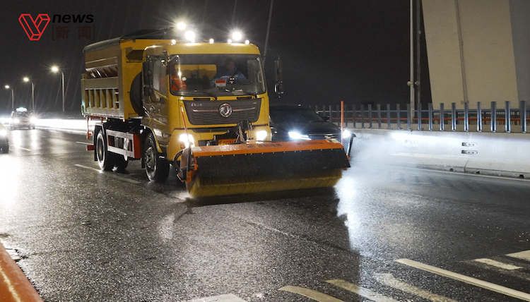 “霸王级”寒潮来袭,抢险车连夜在南浦大桥...
