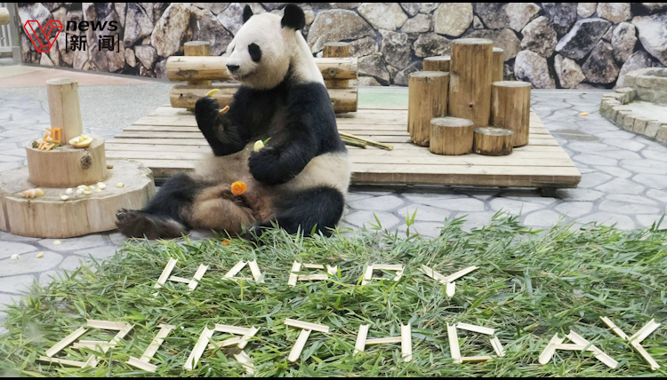 旅日大熊猫“良滨”庆20岁生日:已育九子...