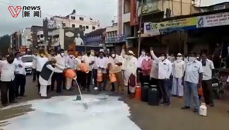 成桶倾倒、洗牛奶浴……印度奶农花式抗议疫...