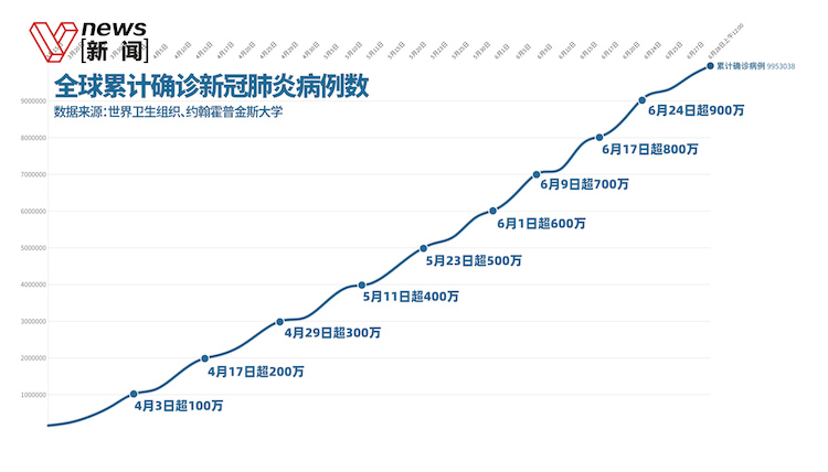 新冠肺炎全球累计确诊病例近千万,8天增百...