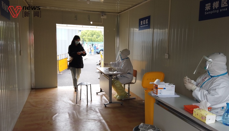 直击上海核酸检测采样点,1米间隔排队,1...