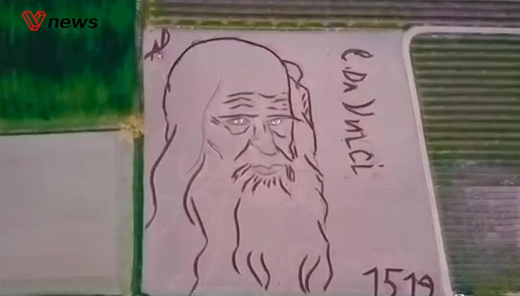意大利艺术家驾驶拖拉机在农田上画出达芬奇...