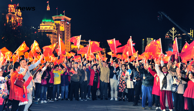 外滩灯光为祖国点亮,海关钟楼“身披”巨型...