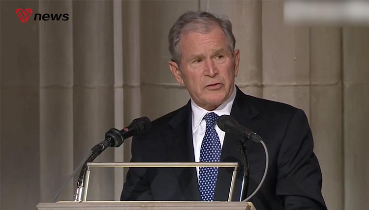 老布什国葬:小布什哽咽与父告别,四任总统...