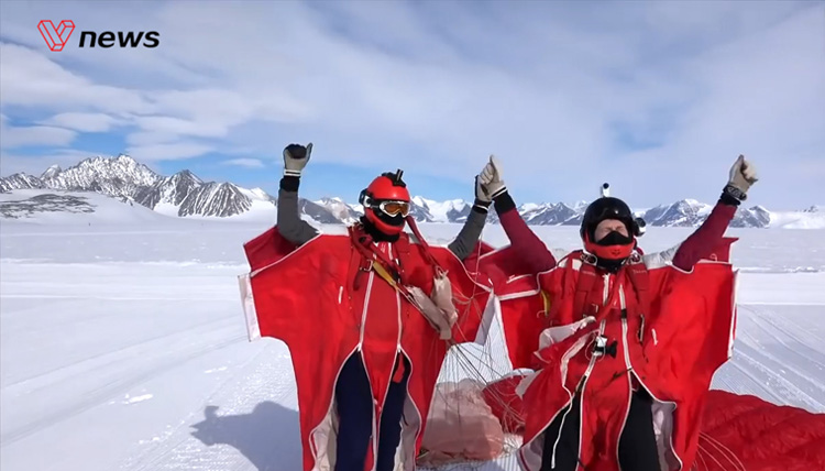 100迈飞越雪原!50岁女子成首位翼装飞...