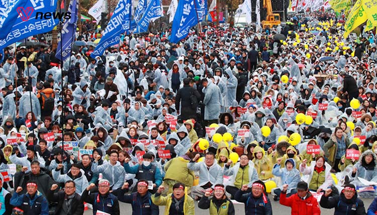 韩国频发罢工游行,4万工人抗议政府取消工...