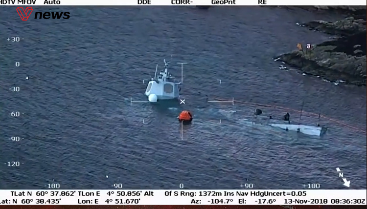 挪威海军“海尔格-英斯塔”号与油轮发生碰...