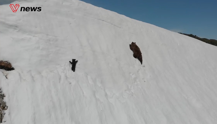小熊跟着妈妈攀爬雪山多次滑落最终登顶,专...