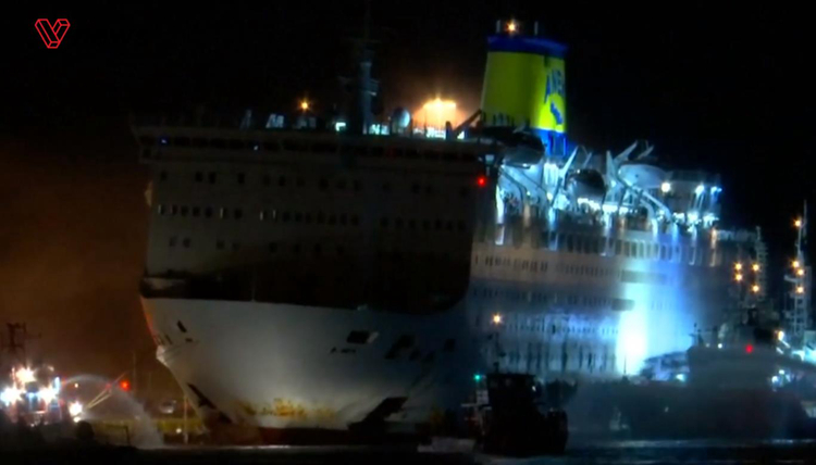 希腊一渡轮行驶中车库突然起火,无人伤亡