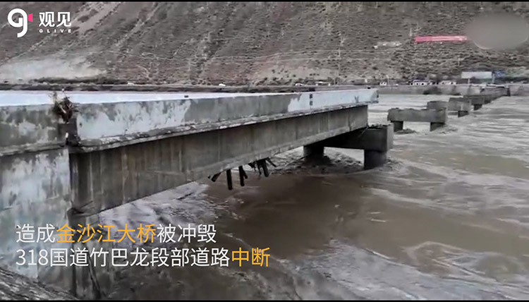 白塔堰塞湖洪峰冲毁金沙江大桥,致318国...