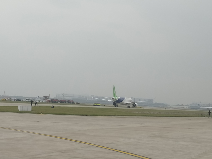 C919即将在浦东机场第四跑道起飞,飞机上有三名试飞员,二名试飞观察员。